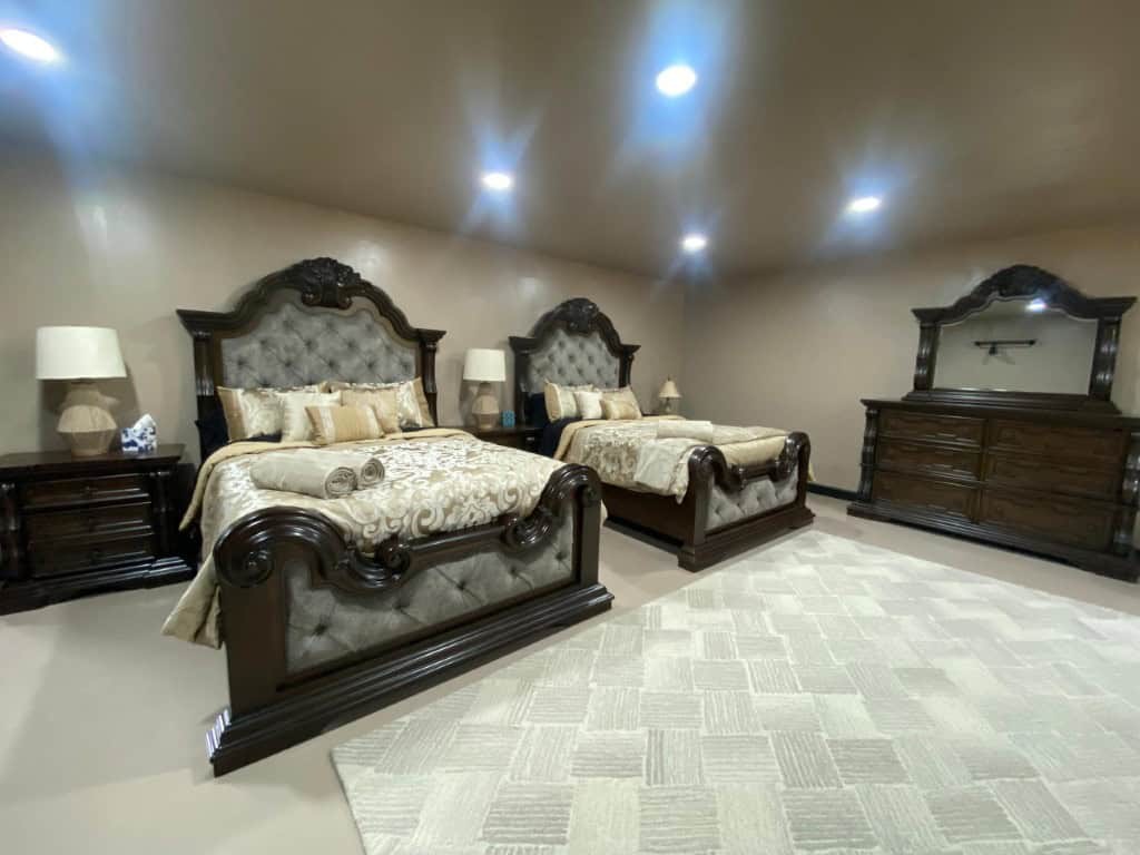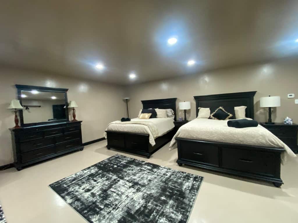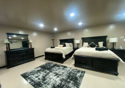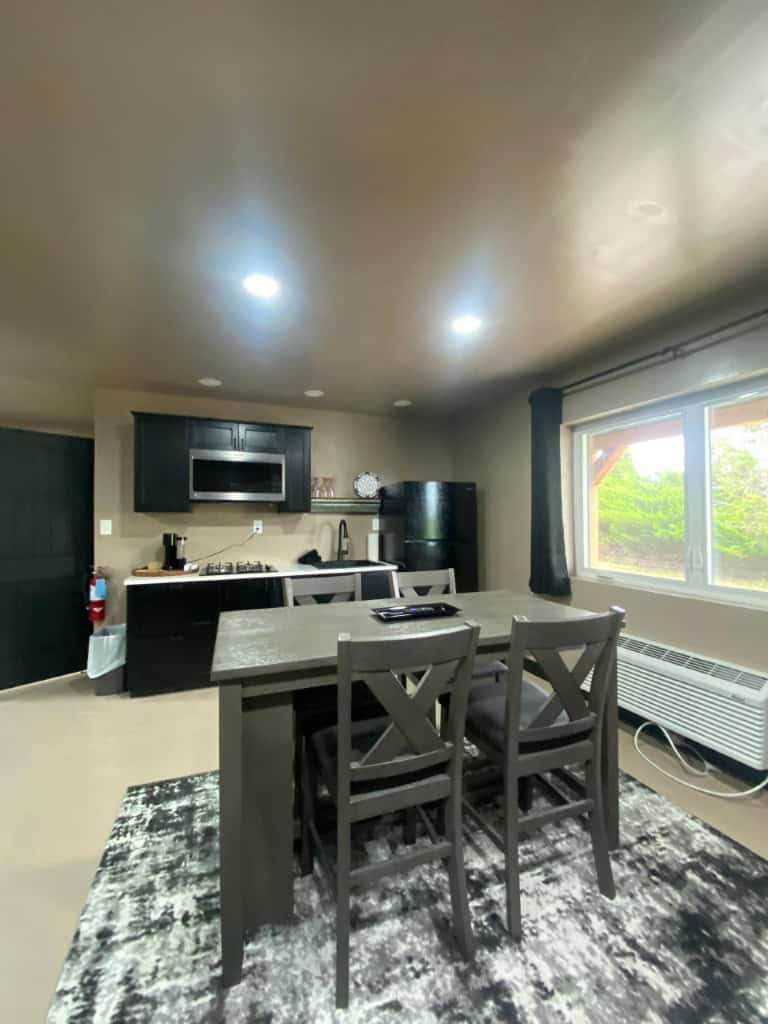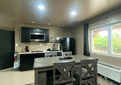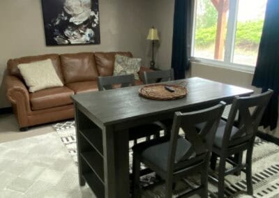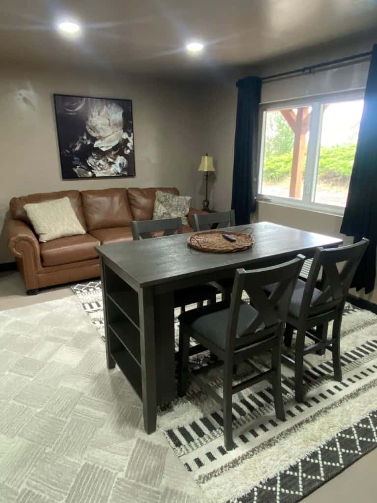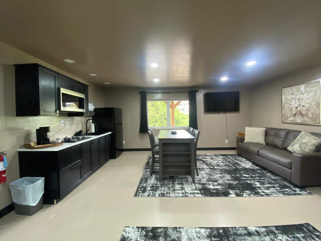 The Rec Center offers an exceptional retreat where comfort and recreation come together. It is home to two beautifully appointed suites — The Buffalo Suite and The Elk Suite — each designed with your stay in mind. Both feature en-suite bathrooms, kitchenettes, a dedicated workspace with a dining table, and two plush queen beds. For added convenience, each suite also includes a pull-out couch, ensuring ample space for families or groups.